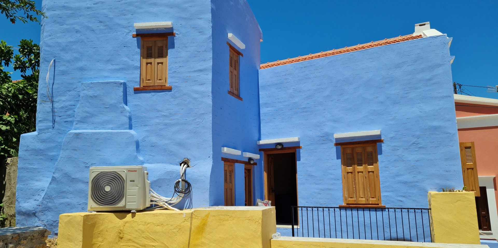 Indigo is a restored property used to be the house of a Symi folk painter, who decorated it with his unique style and painted in yellow ochre and indigo tones. During the restoration, all the original decorative features were carefully preserved. The house also features two traditional stoves, a cistern, a balcony and a lush garden featuring two olive trees, one lemon tree, one avocado, one pomegranate tree, one indigenous palm tree and one cypress.
